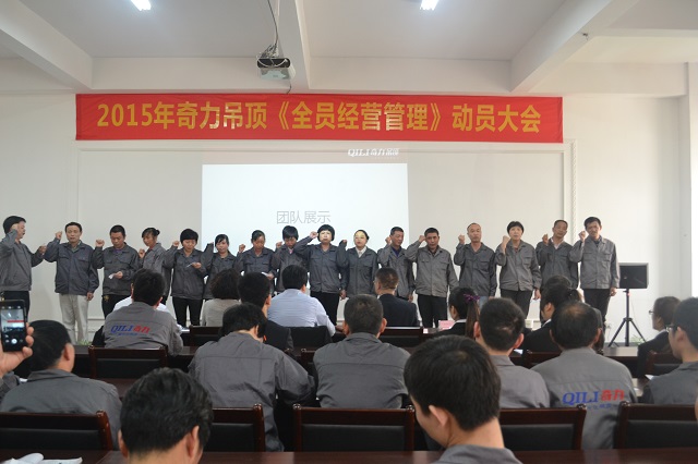 4月2日,繼3月奇力多次大幅對外展示大動作和決心之后,終于迎來奇力內部大變革的伊始。“2015年奇力吊頂‘全員經營管理’動員大會”于8時10分正式拉開帷幕。