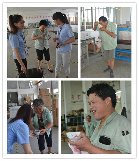 7月27日下午,行政部拿著清涼的綠豆湯進(jìn)入酷熱的車間,為車間員工帶去清涼問候。濃稠的綠豆湯汁,涼爽甘甜,奇力家人們端過這一碗綠豆湯,各個(gè)臉上洋溢著笑容,如此盛夏,奇力公司現(xiàn)場(chǎng)卻是笑聲連連,場(chǎng)面溫馨甜蜜。