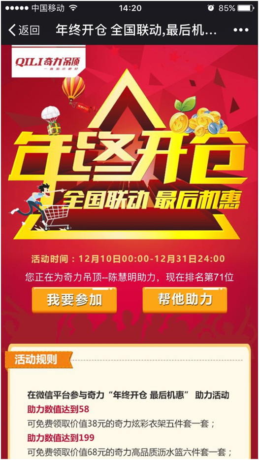 本次“年終開(kāi)倉(cāng) 最后機(jī)惠”還有一項(xiàng)微信助力活動(dòng),您可以在微信平臺(tái)參與。