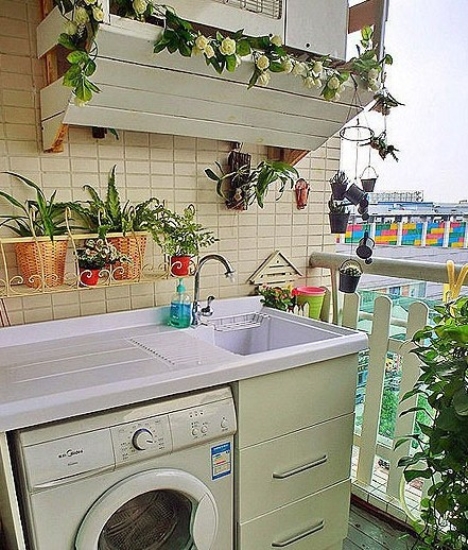 把陽臺(tái)改造成干凈利落的洗衣房,